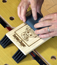 蓋面は弊社にて焼印を行い、蓋面を軽くサンディングして仕上げております。焼印はプリント印刷と異なり、天然木材の性質上、焼き加減や焼きムラなども商品によって若干異なります。