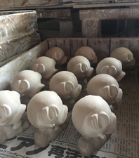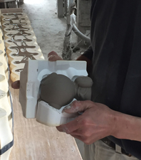 成形用の型は人形や花瓶の成形と同じく石膏で型を作っております。